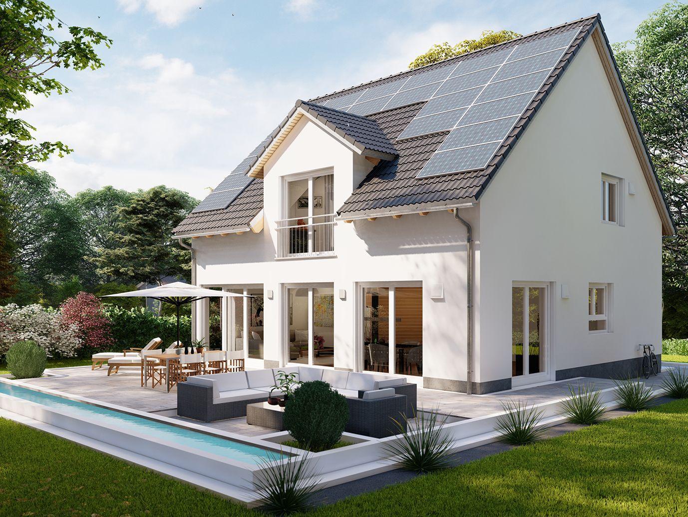 Ankommen und die Tür zum eigenen Zuhause aufschließen. Aus diesem Traum wird mit dem Ziegelmassivhaus Noblesse 147 Wirklichkeit: Es kombiniert optimale Flächennutzung mit lichtdurchflutetem Ambiente. Erleben Sie Ihr persönliches Gefühl von Gemütlichkeit. Die großen Glasflächen mit Eckverglasung im Wohnzimmer lassen viel Licht ins Innere – wer möchte hier nicht gerne das Abendrot entspannt vom Sofa aus genießen? Ergänzt wird das moderne Familiendomizil durch schlaue Lösungen wie eine begehbare Umkleide und ein separates Bad für die Kinder: nie wieder Stress am Morgen! Willkommen zuhause.